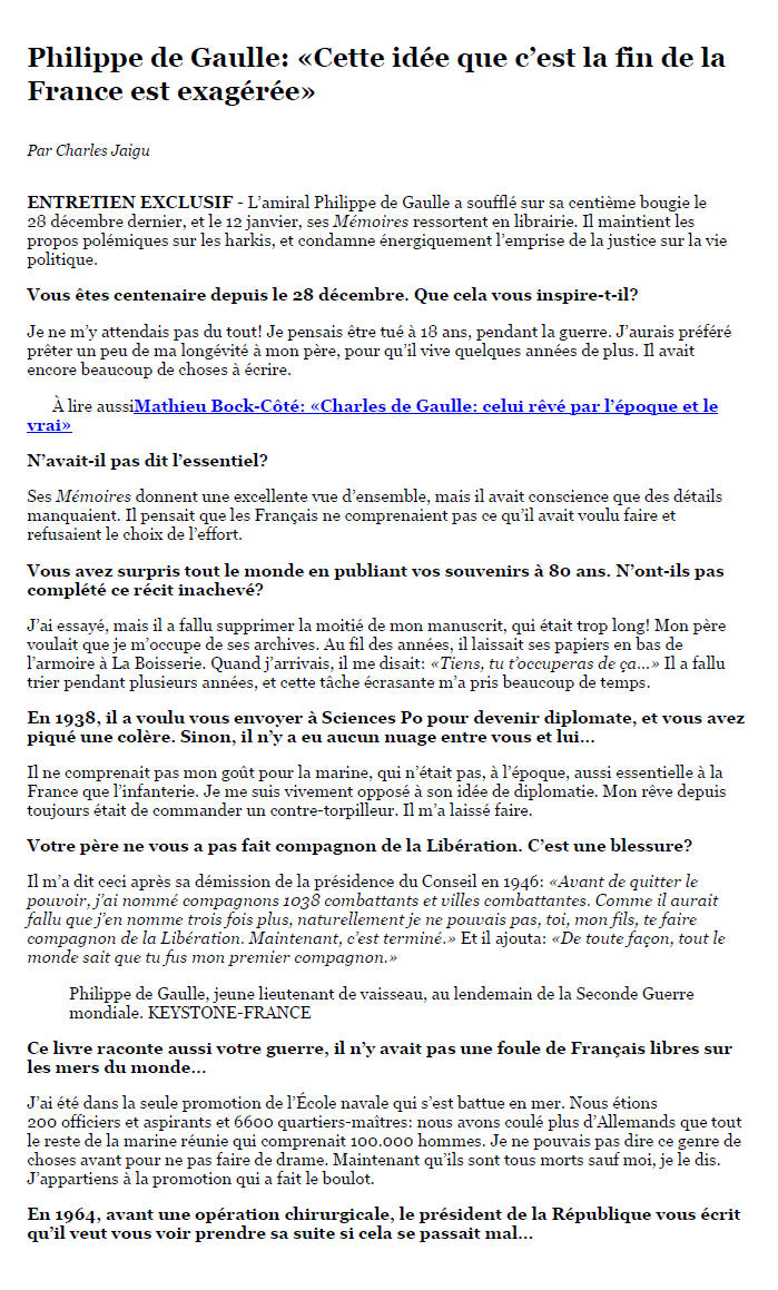 extraites des Mémoires accessoires de Philippe de Gaulle / Plon /