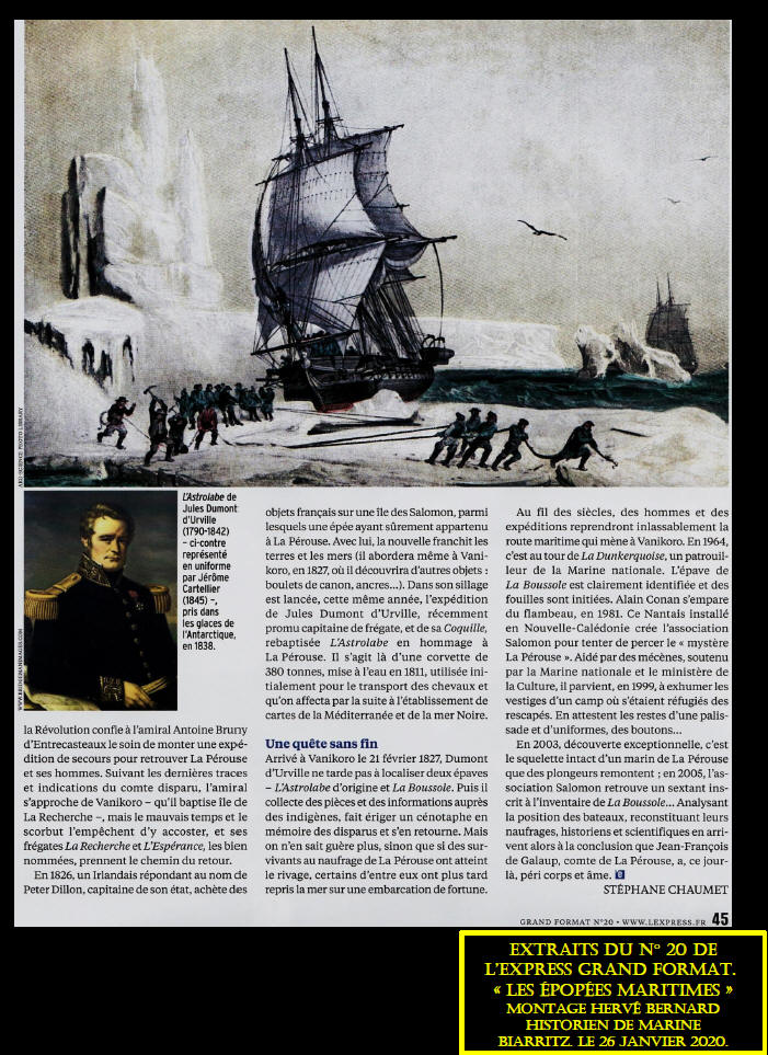 l’épave de l’Astrolabe et aperçut l’épée de La PEROUSE, marquée de