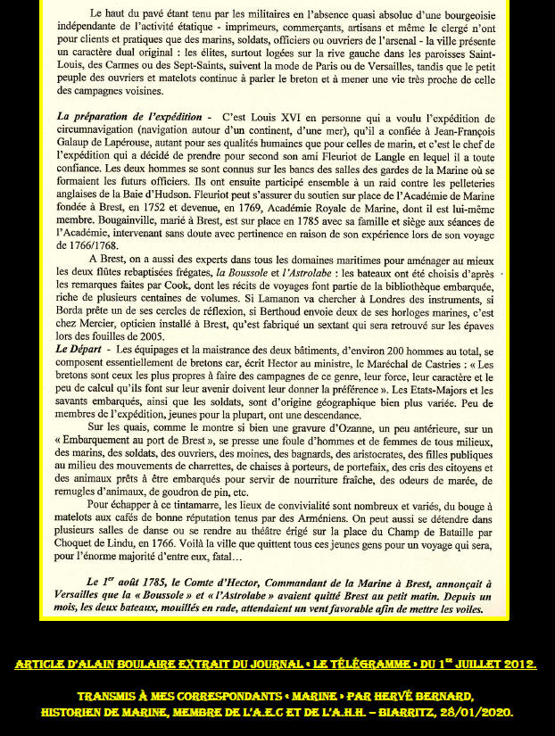 l’Astrolabe commandé par FLEURIOT de LANGLE (bio 1758) quitte Brest.