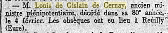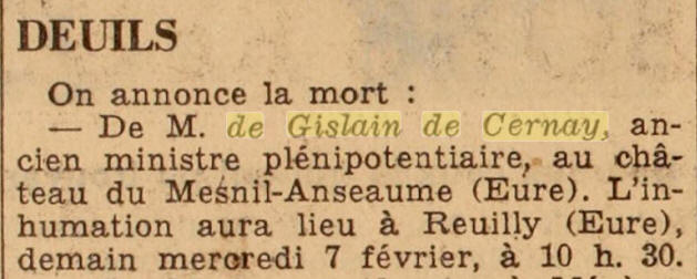 de GISLAIN de CERNAY et de Marie Mathilde de CORDAY
