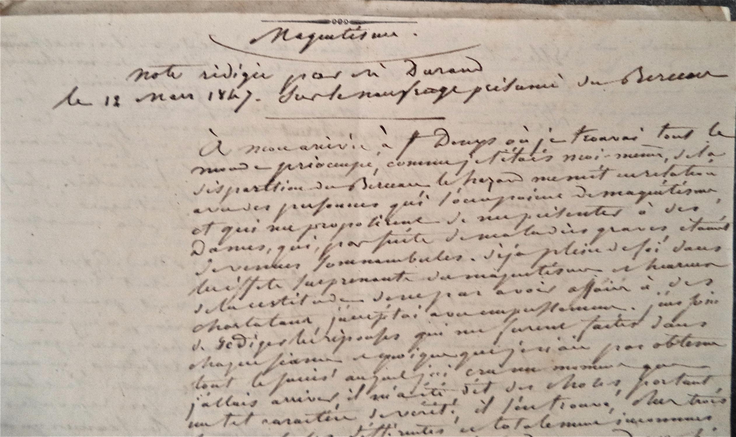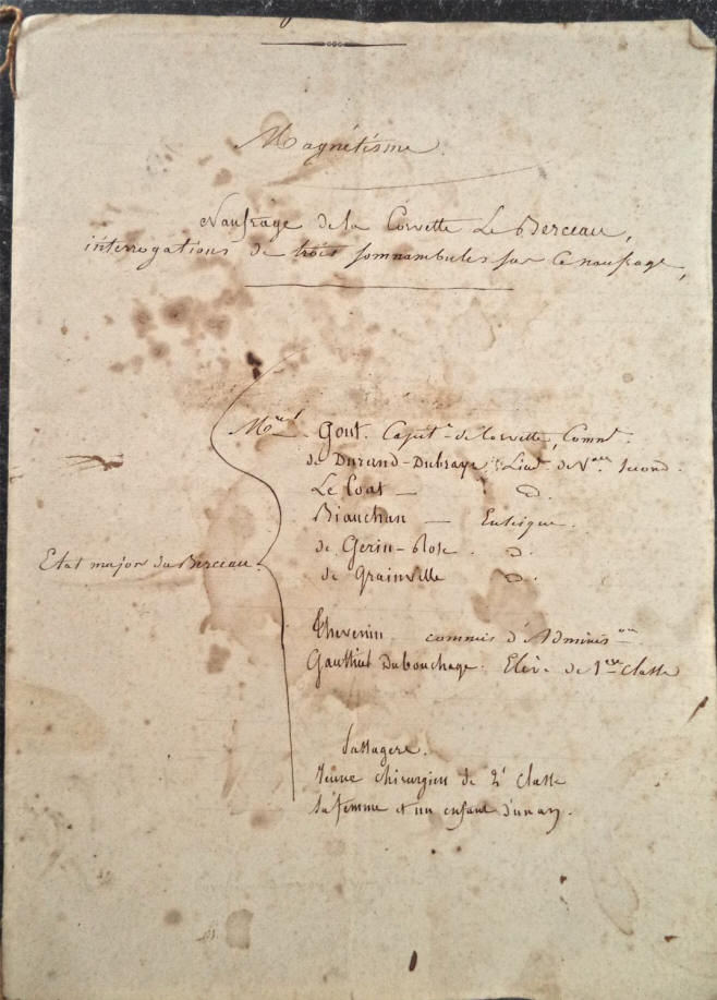 Durand, le 12 mars 1847, sur le naufrage de la Corvette LE BERCEAU