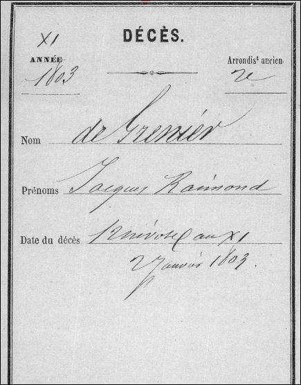 SAINT PIERRE (Martinique) - Décédé le 2 janvier 1803 à PARIS