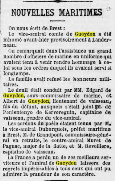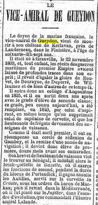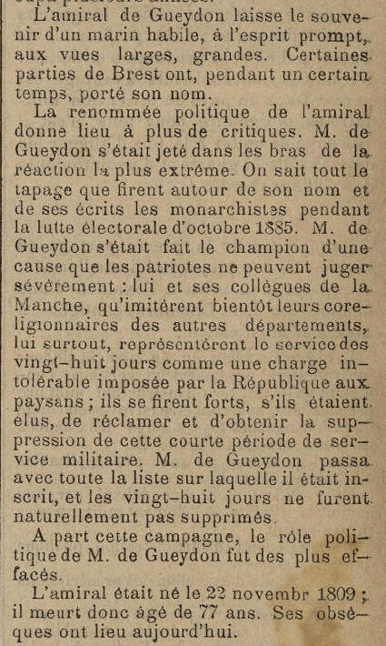 Extrait La Dépêche de Brest / 3 décembre 1886