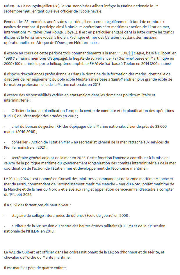 d’action navale, a fait reconnaître le capitaine de vaisseau Benoît