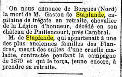 - Décédé le 30 août 1888 à PAILLENCOURT (Nord)