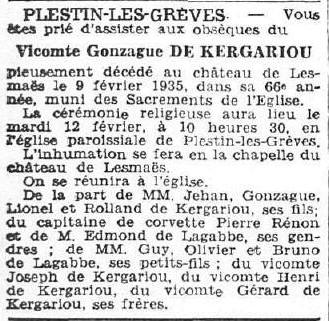 Extrait Ouest-France / 10 février 1935