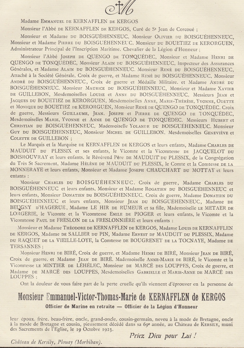 (Loire-Atlantique) - Décédé le 19 octobre 1923 au château de