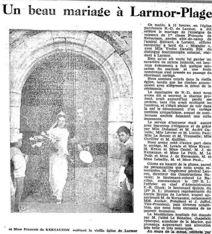 1939 à LARMOR PLAGE (Morbihan) avec Yvette Marie Françoise CAVALIN