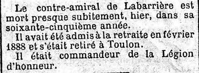 d'Honneur le 5 juillet 1887, étant Major général à TOULON.
