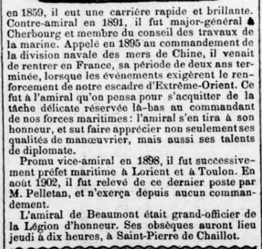 1898 il commande l'Escadre d'Extrême-Orient, pavillon sur le VAUBAN,