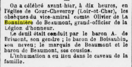 (Indre-et-Loire) - Décédé le 29 janvier 1906 à ISSY-les-MOULINEAUX