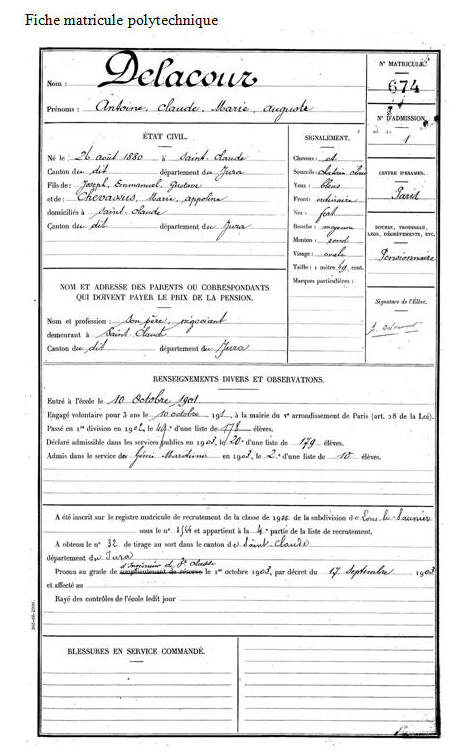 Élève de l'École polytechnique le 1er novembre 1901, opte pour le
