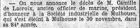 GUADELOUPE- Décédé le 30 novembre 1924 à MULHOUSE