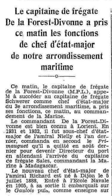 Extrait Le Nouvelliste du Morbihan / 19 mars 1939