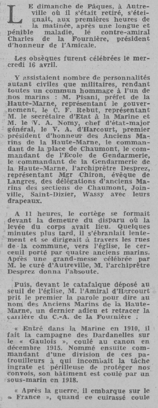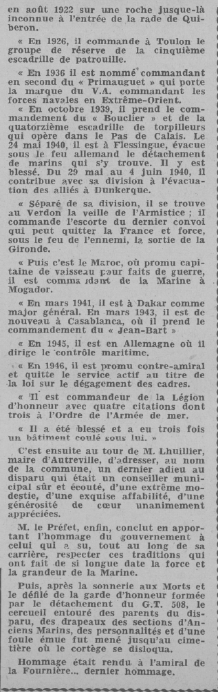 à LORIENT (Morbihan) - Décédé le 13 avril 1952 à AUTREVILLE sur La