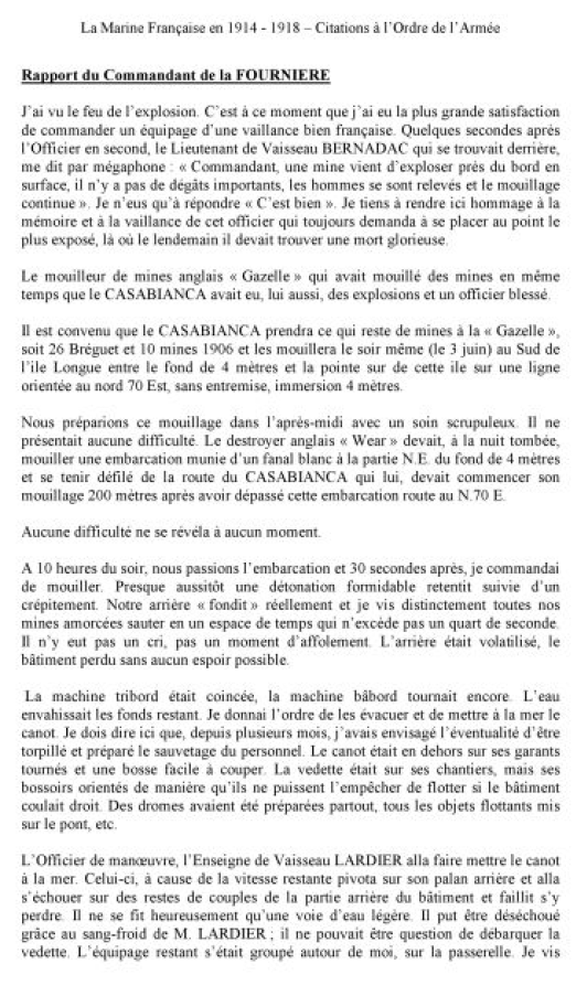 Charles Joseph de la FOURNIÈRE, commandant du Casabianca, dut la vie