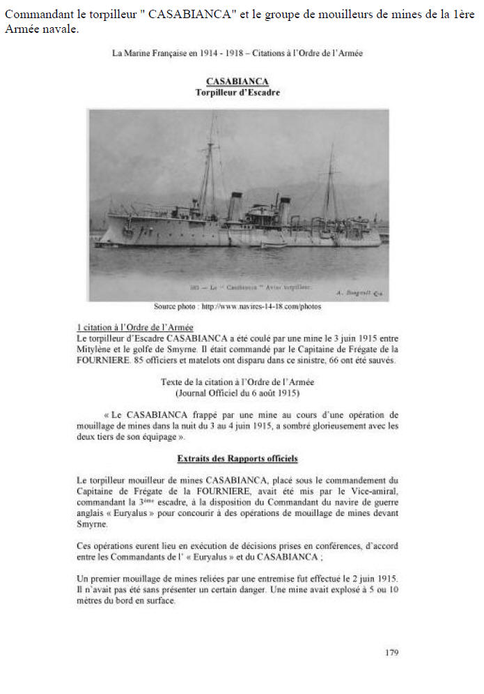 juin 1915, Commandant le torpilleur " CASABIANCA" et le groupe de