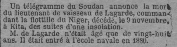 1863 à PRANLES (Ardèche) - Décède le 9 novembre 1891 de la fièvre jaune à KITA