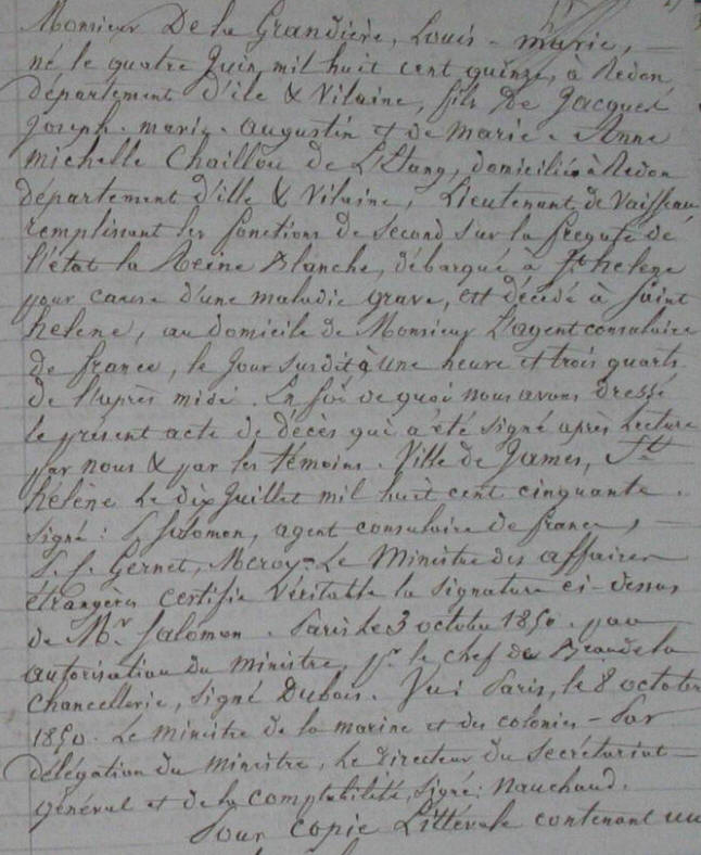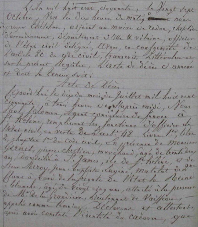 REDON (Ille-et-Vilaine) - Décédé le 18 jullet 1850 à SAINTE HELENE