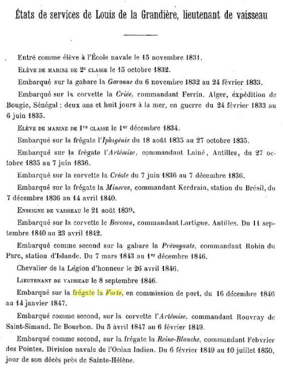 Enseigne de vaisseau le 21 août 1839; port Lorient.