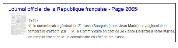 Commissaire en chef de 1ère classe le 1er avril 1940.