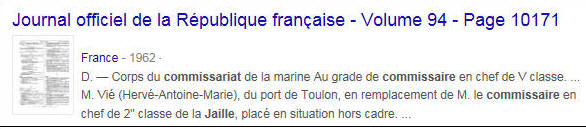 commissariat de la marine, pour compter du 15 février 1940, au grade
