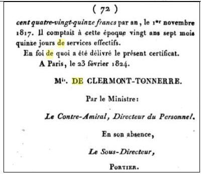 1817, a Servi dans la marine pendant vingt ans Sept mois et quinze