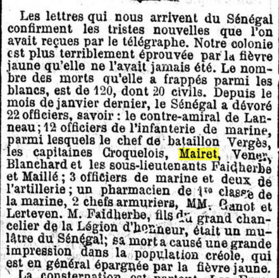 PARIS (Seine) - Décédé le 4 août 1881 à DAKAR (Sénégal) Fils de Regulus Adolphe
