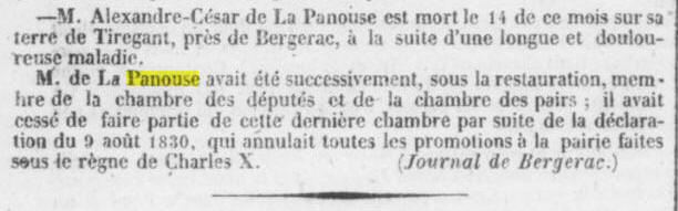 Né le 11 mars 1764 à SAINT CERE (Lot) - Décédé le 14 juin 1836 au château de Tiregand à CREYSSE (Dordogne)