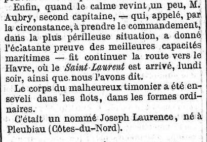 à PARIS XIIème (Seine) - Décédé le 14 février 1883, en mer aux
