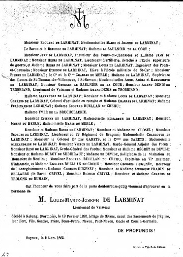 Source : Le lieutenant de vaisseau Joseph de Larminat par le