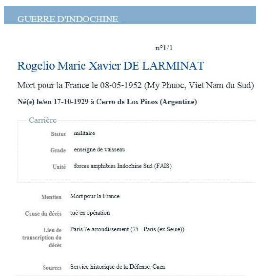 secrétaire d'État à la Marine, l'enseigne de vaisseau de Larminat a