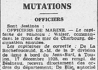 d'ordonnance auprès du Contre-amiral Louis DARTIGE du FOURNET,