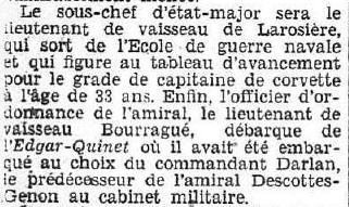 sur le croiseur cuirassé "EDGAR-QUINET", Aide de camp auprès du