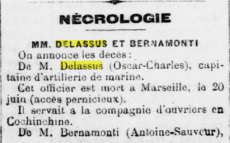 Né le 1er janvier 1854 à BETHUNE (Pas de Calais) - Décédé le 21 juin 1893 à MANILLE,