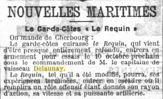 Commandant le cuirassé garde-côtes "REQUIN", en essais à CHERBOURG.