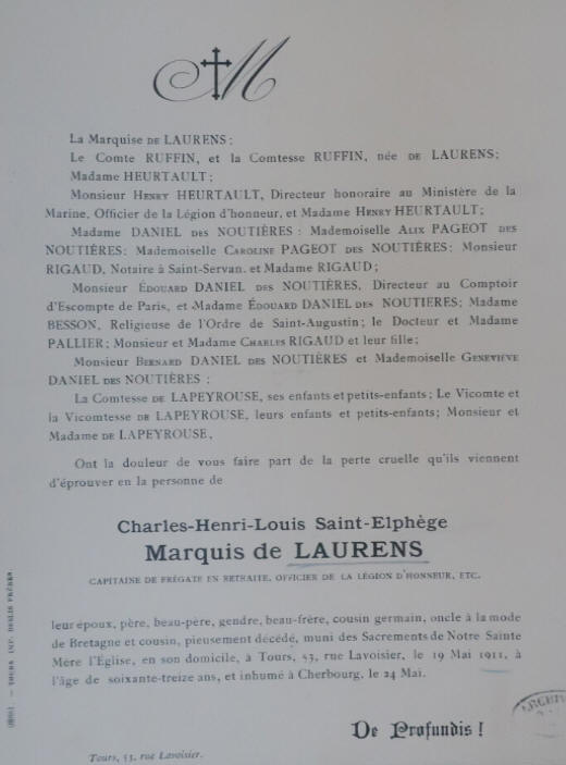 (Manche) - Décédé le 19 mai 1911 à TOURS (Indre et Loire)