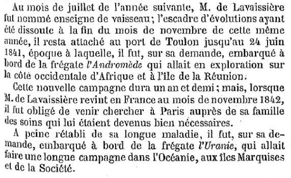 1er juillet 1840, il est sur l' "ANDROMÈDE" sur les côtes