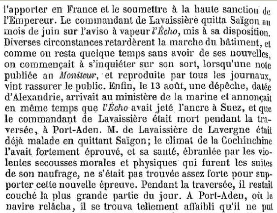 avec l'empereur d'ANNAM, il rentrait en FRANCE mais décède en rade