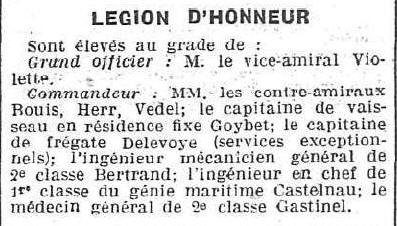 sur le cuirassé "MIRABEAU", 1ère Escadre, 1ère Armée navale (Cdt