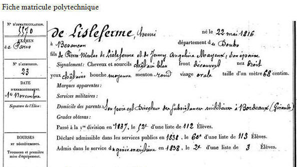 Sous ingénieur de 1ère classe le 30 octobre 1845