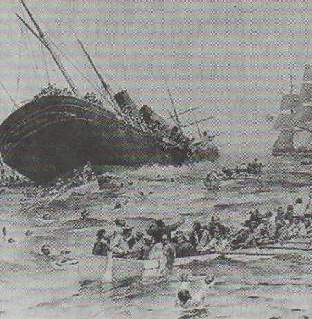 trois-mâts anglais en fer, ouvert, le flanc blessé, La Bourgogne