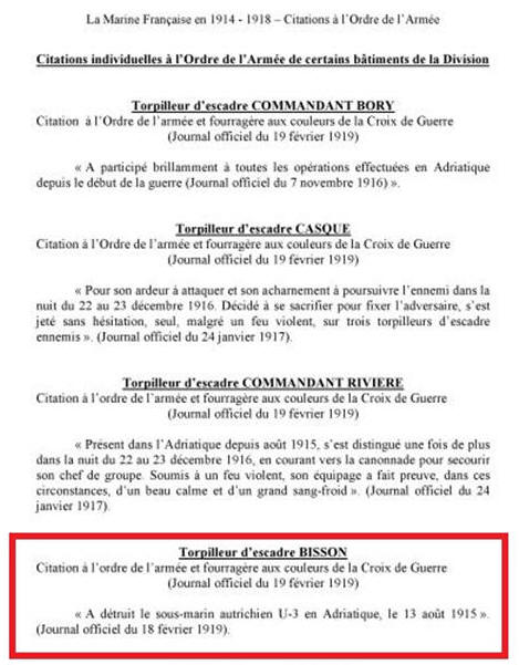 A participé à bord du "BISSON" à plusieurs actions en Adriatique.