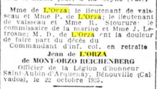 Antoine Jean de l'ORZA de MONT-ORZO REICHENBERG, promotion 1921