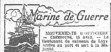 Entre dans la Marine en 1906, Aspirant le 5 octobre 1909; port