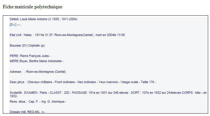 RIOM-ès-MONTAGNES (Cantal) Élève de l'École polytechnique promotion 1930, opte pour la Marine.