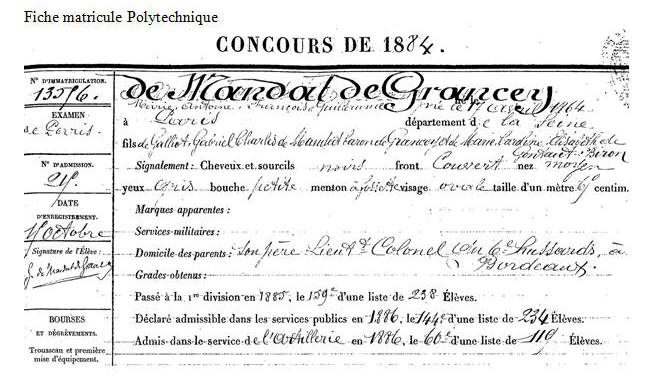 Mandat de Grancey est inscrit d'office pour faits de guerre