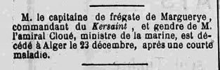 - Décédé le 23 décembre 1880 en rade d'ALGER (Algérie)