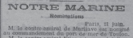Aide de camp auprès du Contre-Amiral Frédéric TURQUET de BEAUREGARD,