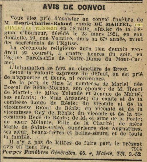 (Indre-et-Loire) - Décédé le 23 mars 1921 à BREST (Finistère).